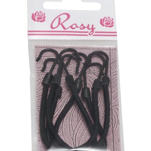 Item 780 Professional Elastic Bands with Hook – Black Polybag “Rosy” of 4 pcs – Cardboard and Polyethylene Box of 36 Polybags